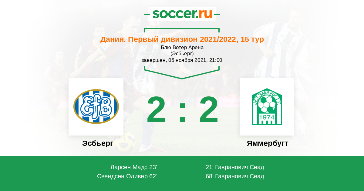 23' (1:1) Ларсен Мадс (8) (Якобсен Никлас (19))