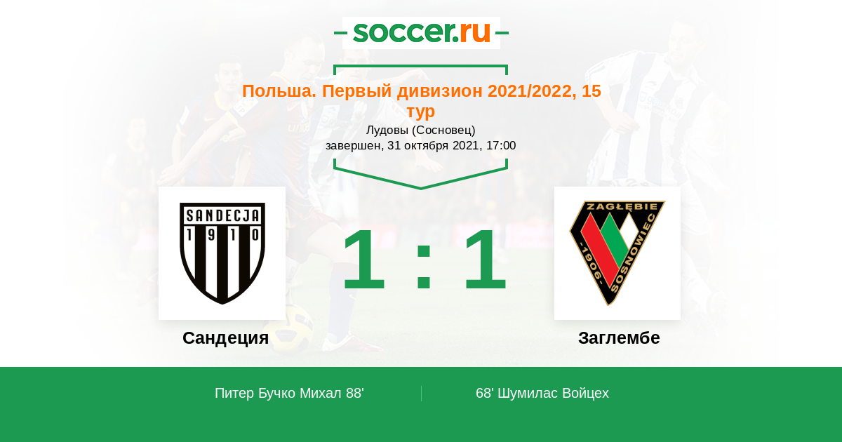 68' (0:1) Шумилас Войцех