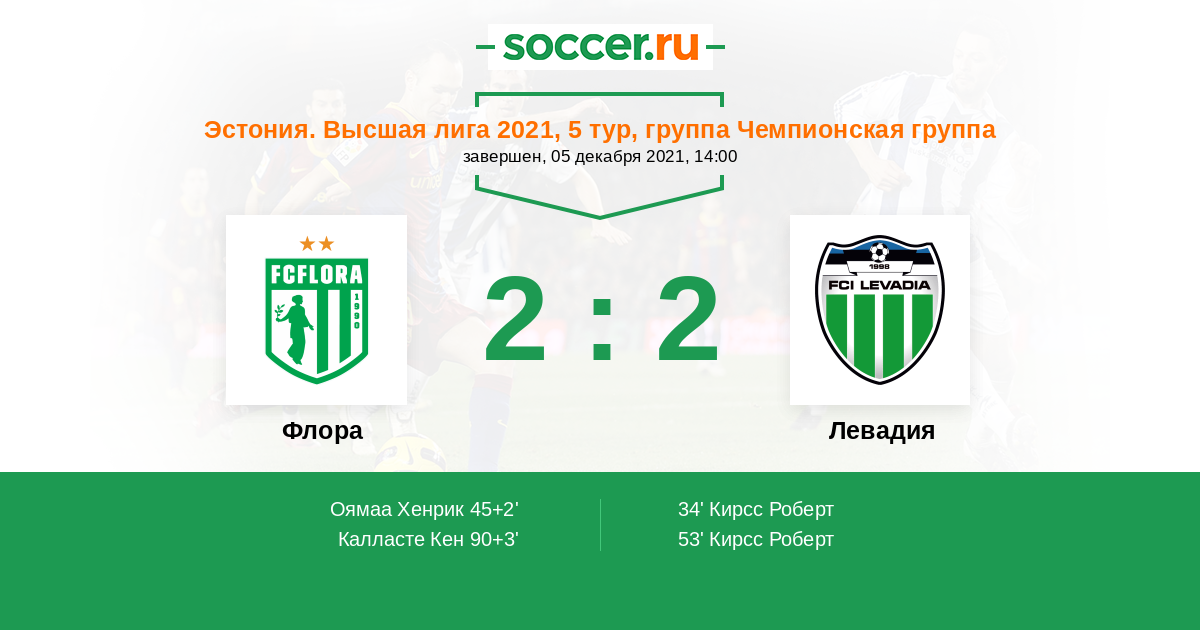 Гол90+3' (2:2) Калласте Кен (25)