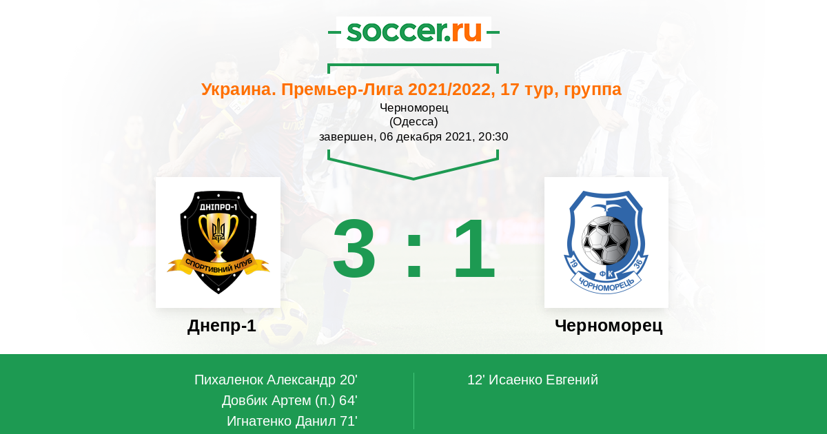 Диаметрально противоположное расположение команд в турнирной таблице Премьер-Лиги Украины и статус хозяина поля дают мне основание сделать ставку, что сегодня Днепр-1 победит Черноморец, забив при этом в каждом из таймов.