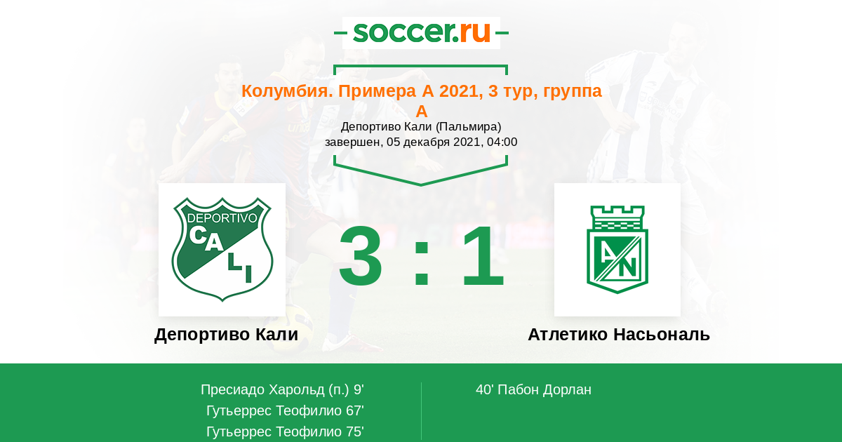 75' (3:1) Гутьеррес Теофилио (29) (Пресиадо Харольд (7))