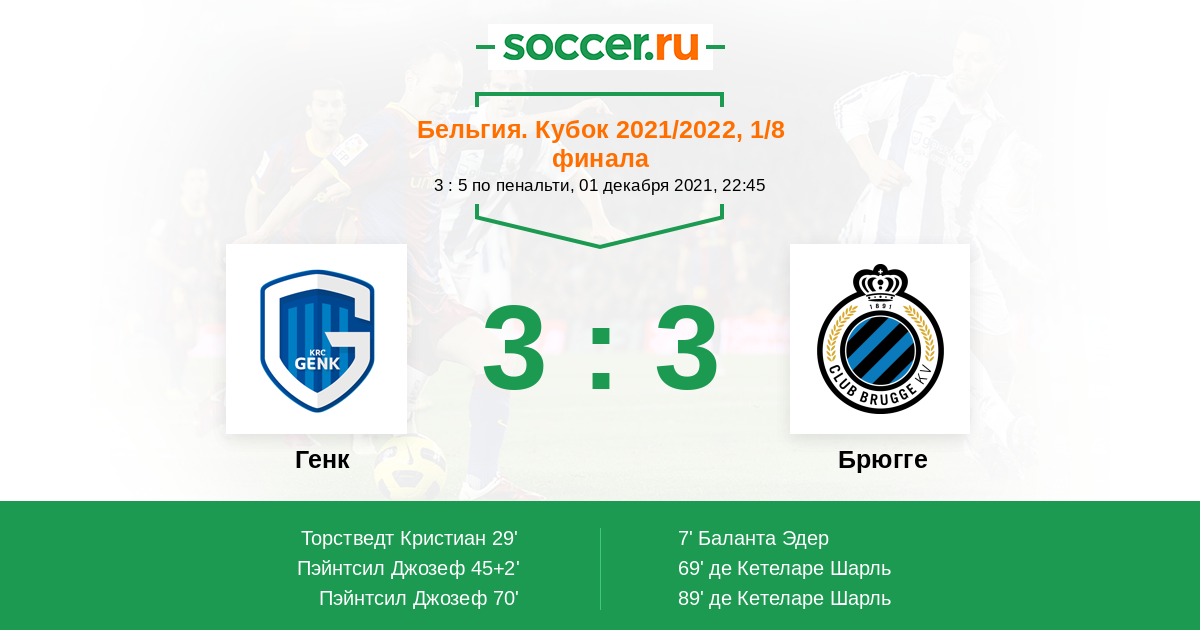 89' (3:3) де Кетеларе Шарль (90) (Ванакен Ханс (20))