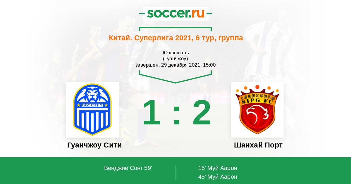 59' (1:2) Венджие Сонг (29) (Фан Юнлонг (6))