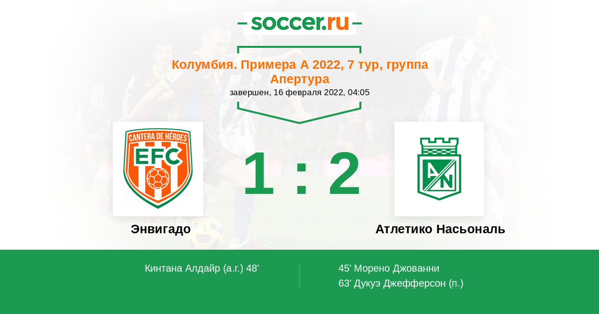 48' (1:1) Автогол Кинтана Алдайр (1)