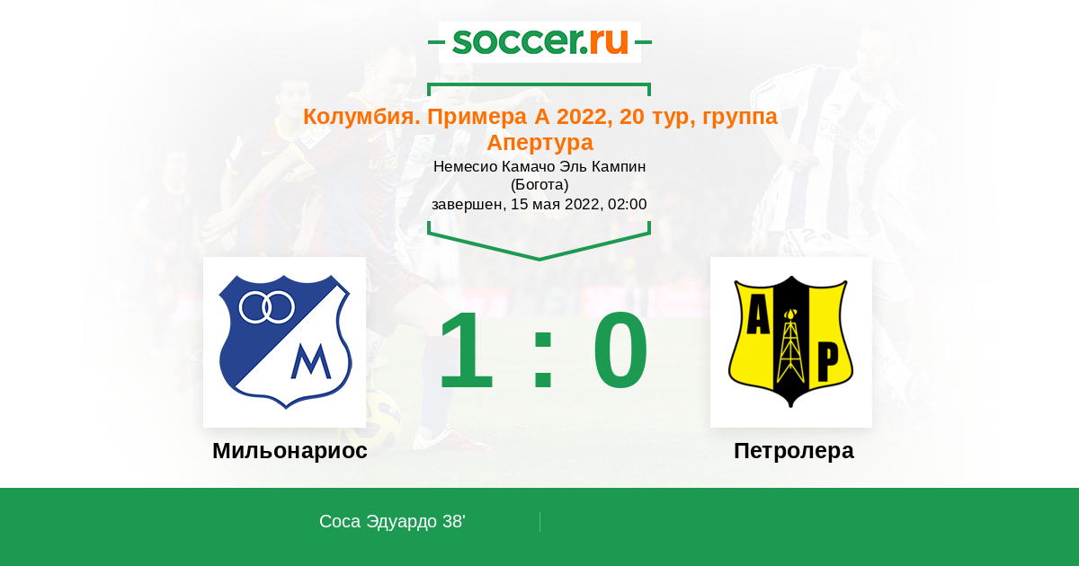 38' (1:0) Соса Эдуардо (8) (Перейра Хуан (21))