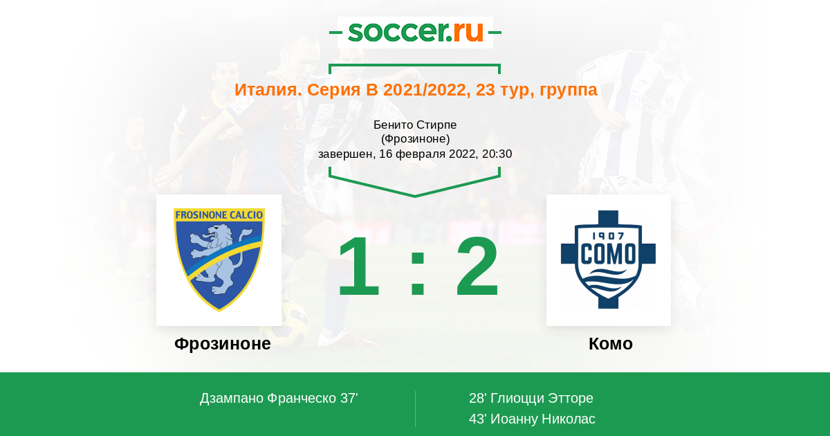 37' (1:1) Дзампано Франческо (11) (Риччи Маттео (88))