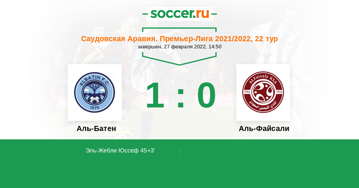 45+3' (1:0) Эль-Жебли Юссеф (10) (Аль-Исса Хуссейн (28))