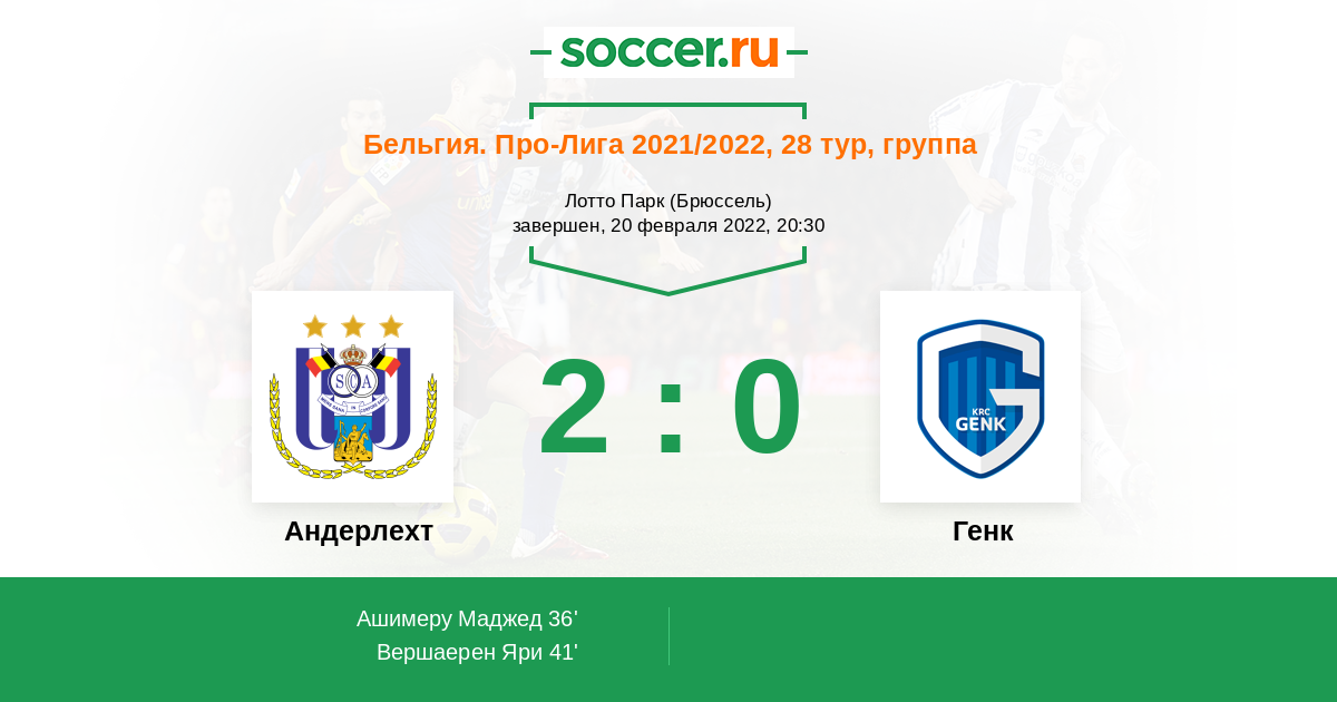 Андерлехт принимает Генк на своем поле. Команды ведут борьбу, но только за разные группы: Андерлехт за первую четверку, занимая на данный момент четвертое место, Генк же за восьмерку, на данный момент занимая 8 место место, отрываясь всего лишь на одно очко от соседа ниже.