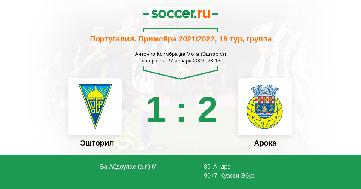 Гол90+7' (1:2) Куасси Эбуэ (18) (Силва Леандру (21))