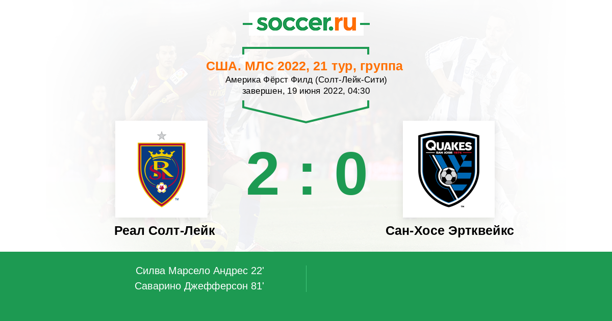В этом матче между командами Реал Солт - Лейк и Сан - Хосе Эрквейс обещает стать результативным в котором командами обменяются голами, что в свою очередь они должны будут пробить тотал больше 2,5. Удачи