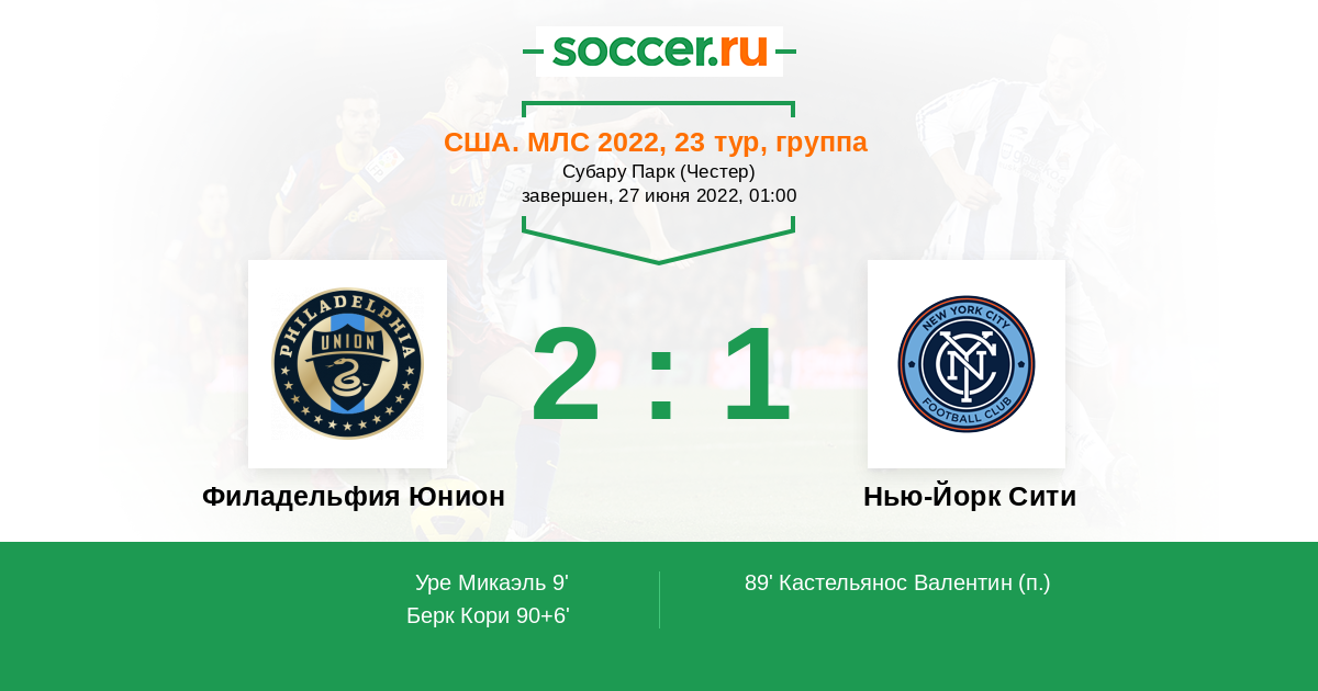 В этом матче встречаются команды которые расположены в верхней части турнирной таблицы. "Нью-Йорк Сити" всего на одно очко сейчас опережает "Филадельфию", но сегодня придётся играть на выезде, что уравнивает шансы. Коллектив из Нью-Йорка не очень удачно проводит гостевые поединки. Поэтому возможно что "Филадельфия" будет владеть преимуществом. Победить может и не получиться, но скорее всего они у себя дома не проиграют. Удачи