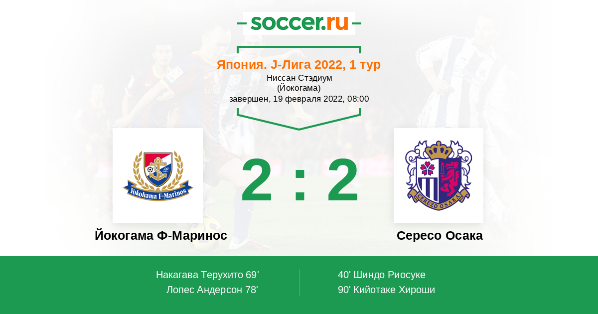 69' (1:1) Накагава Терухито (23) (Лопес Андерсон (11))