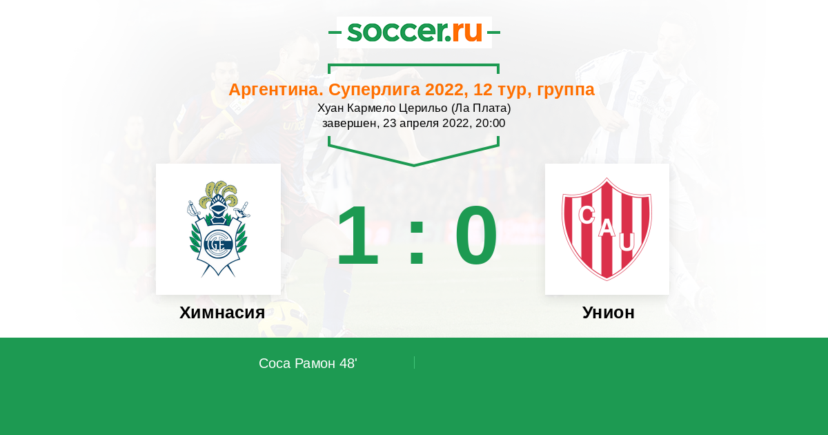 48' (1:0) Соса Рамон (11) (Карбонеро Хоан (7))