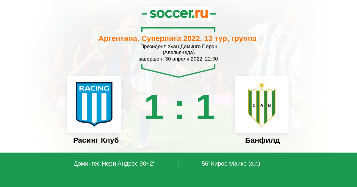 Гол90+2' (1:1) Домингес Нери Андрес (23) (Чанкалай Томаш (28))
