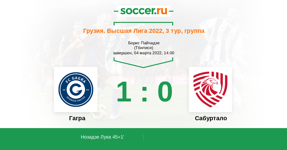 45+1' (1:0) Нозадзе Лука (5) (Чогадзе Темур (11))