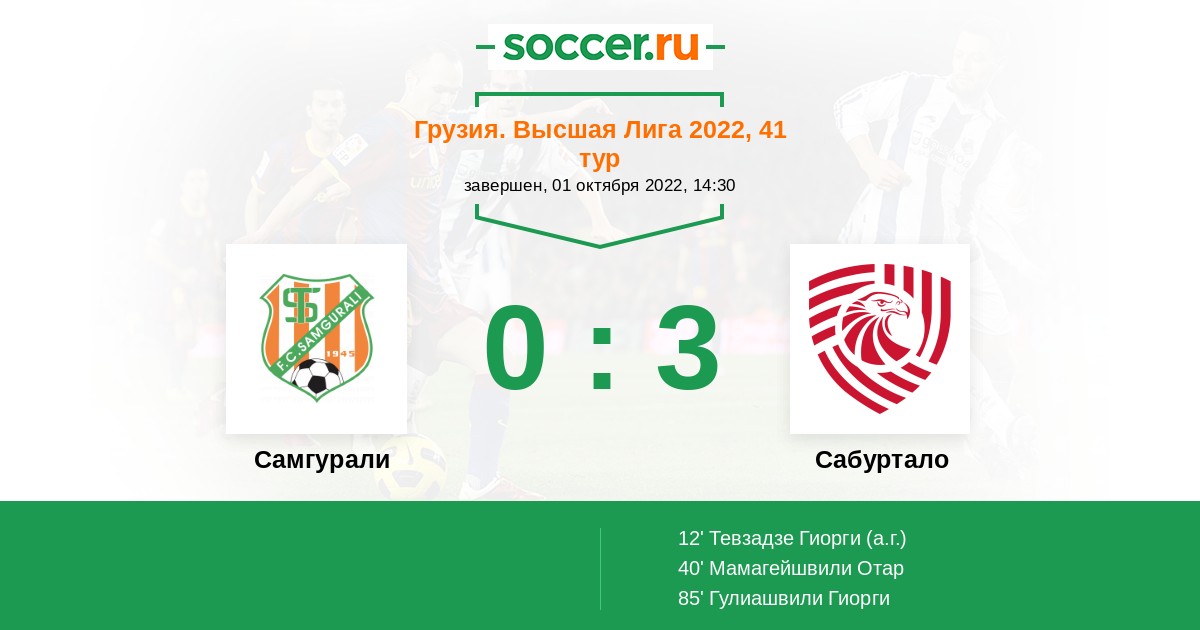 40' (0:2) Мамагейшвили Отар (23)