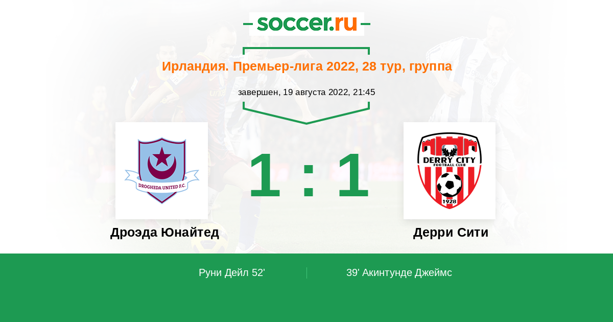 39' (0:1) Акинтунде Джеймс (11) (Даммиган Кэмерон (23))