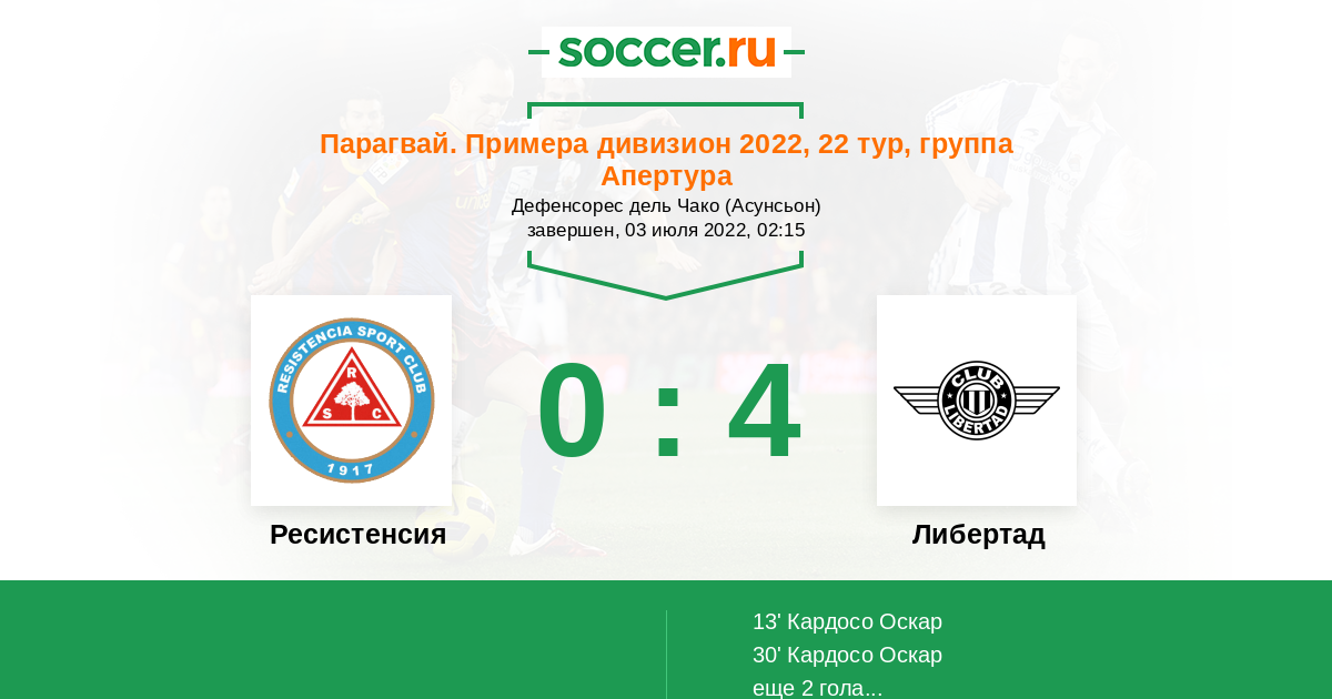 13' (0:1) Кардосо Оскар (7) (Барейро Антонио (20))