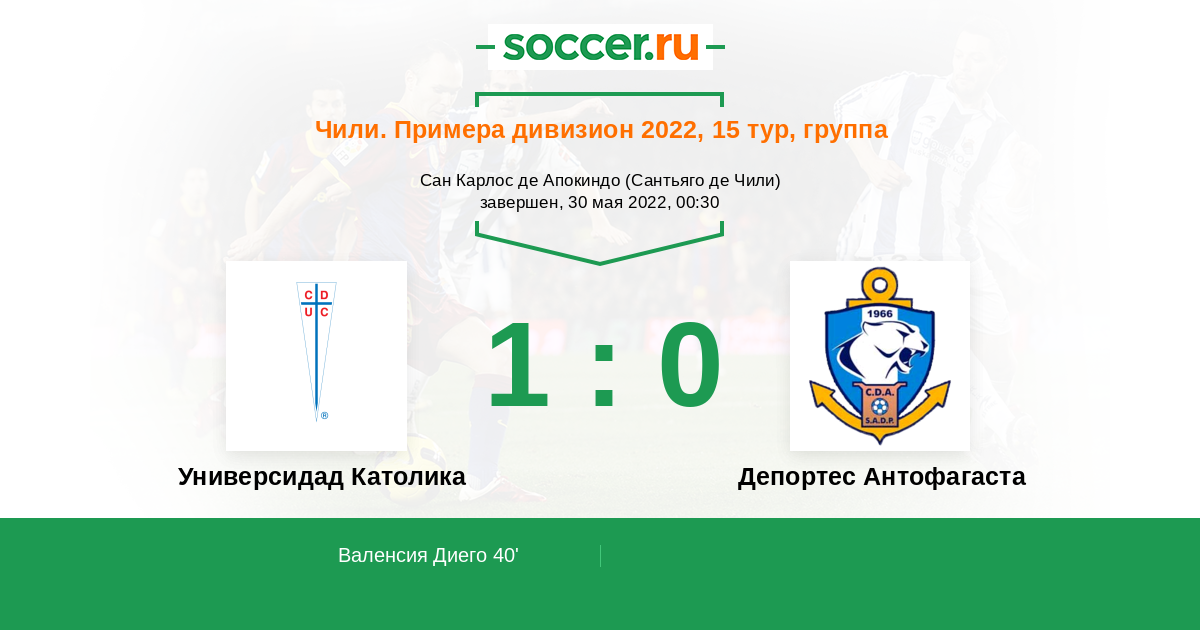 40' (1:0) Валенсия Диего (30) (Парот Альфонсо (24))