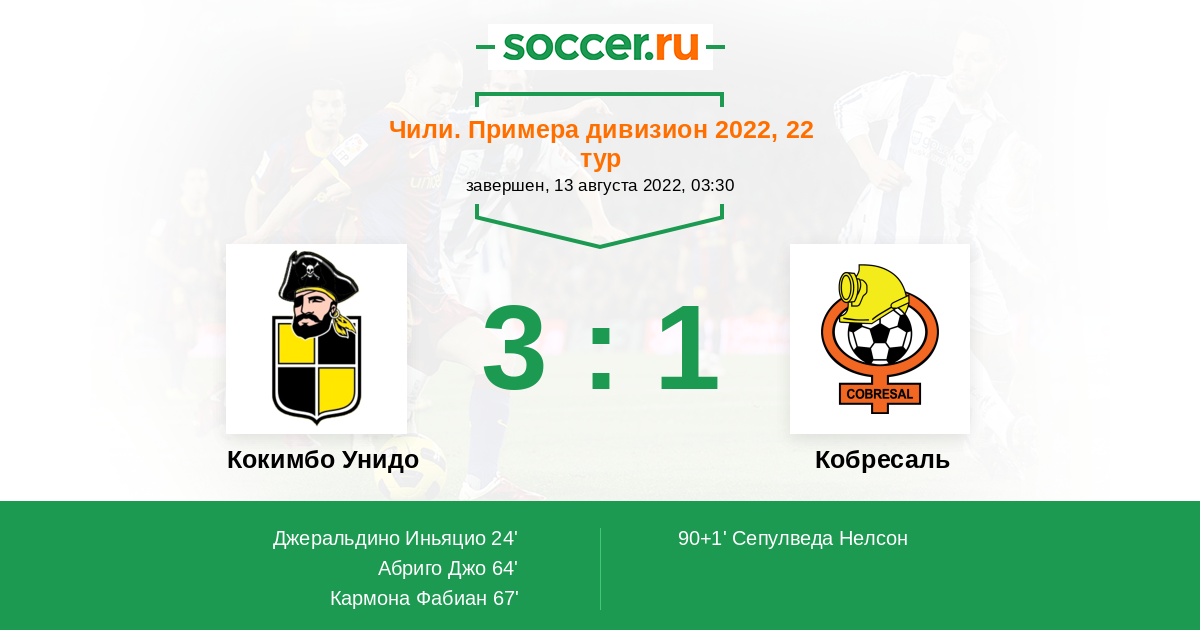 Гол90+1' (3:1) Сепулведа Нелсон (20)