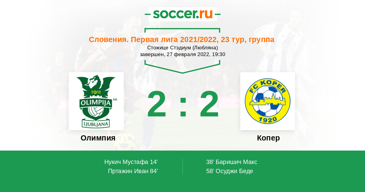 14' (1:0) Нукич Мустафа (9) (Матко Алеша (27))