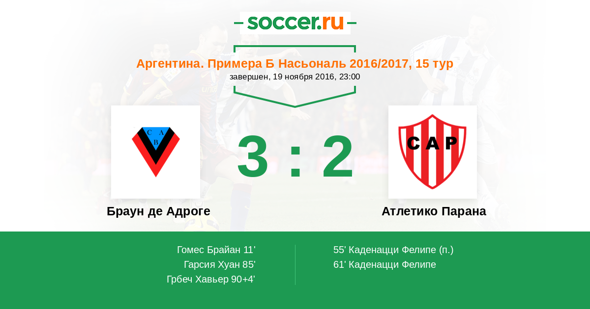 Матчи Аргентина. Примера Б Насьональ 2016/2017