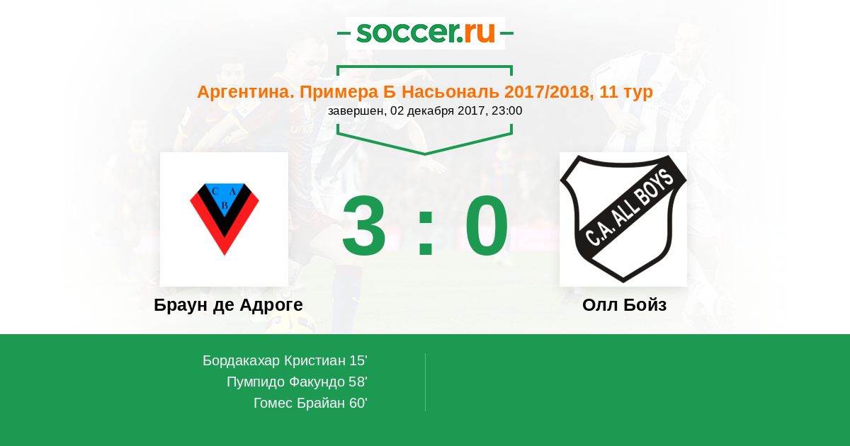 Матчи Аргентина. Примера Б Насьональ 2017/2018