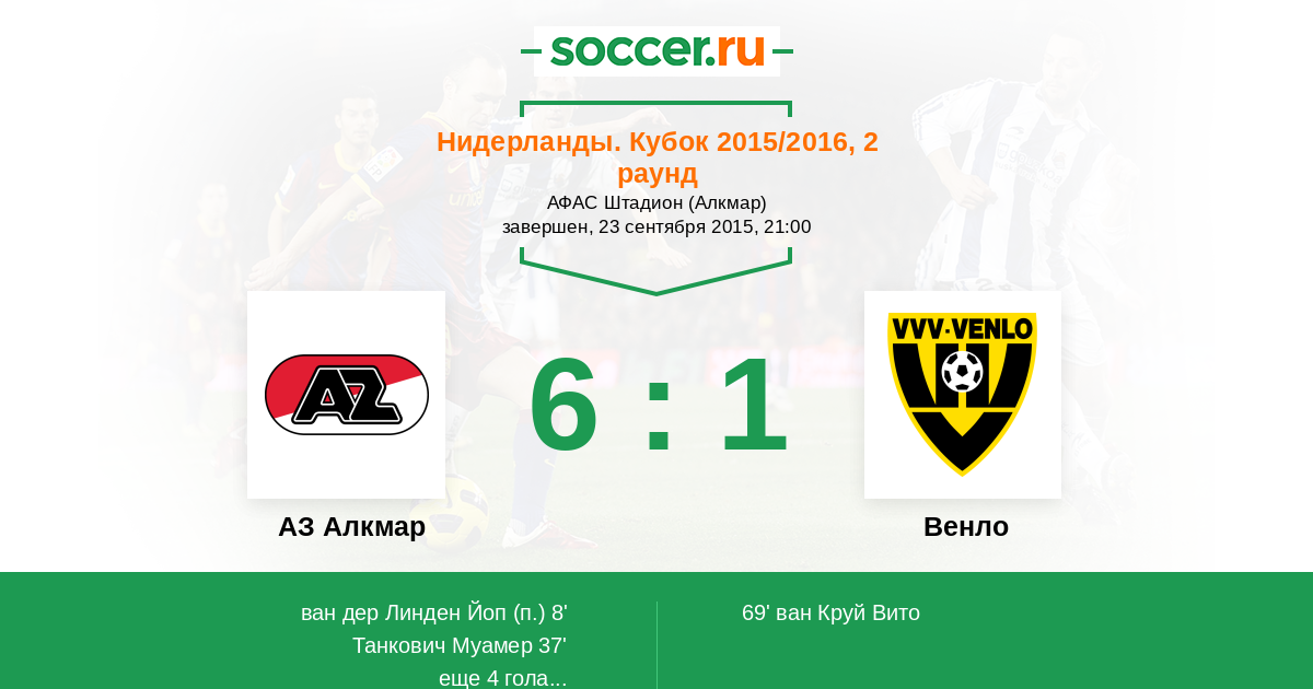 8' (1:0) ван дер Линден Йоп