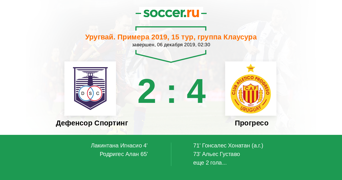 71' (2:1) Автогол Гонсалес Хонатан (26)