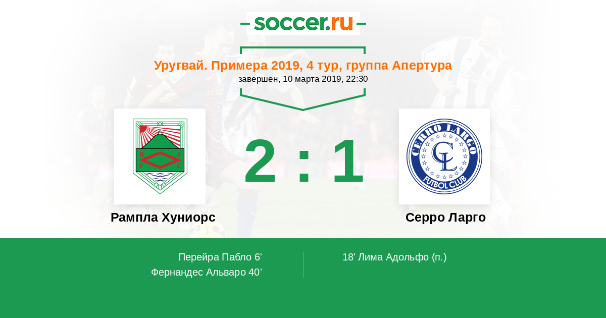 6' (1:0) Перейра Пабло (19)