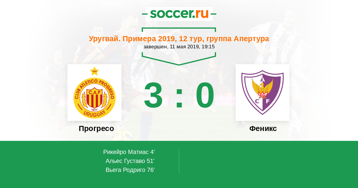 4' (1:0) Рикейро Матиас (13)