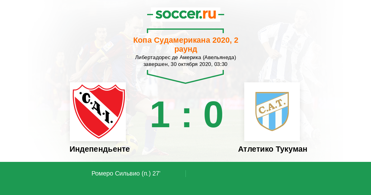 27' (1:0) Ромеро Сильвио (18)