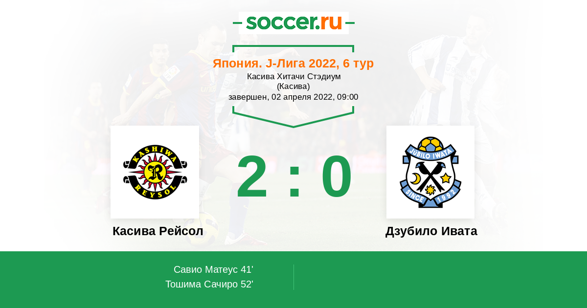 41' (1:0) Савио Матеус (10) (Митсумару Хирому (2))