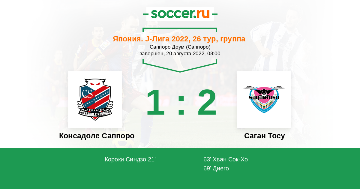 69' (1:2) Диего (5) (Фукута Акито (6))