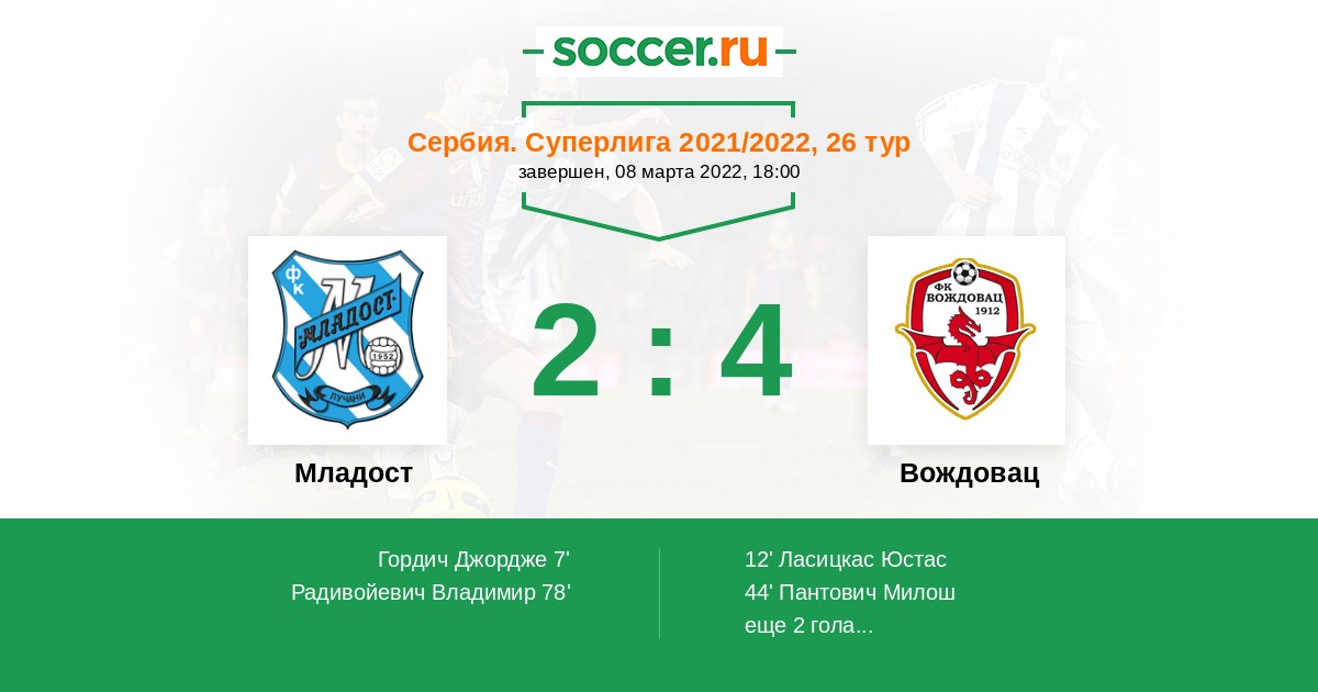 44' (1:2) Пантович Милош (17)