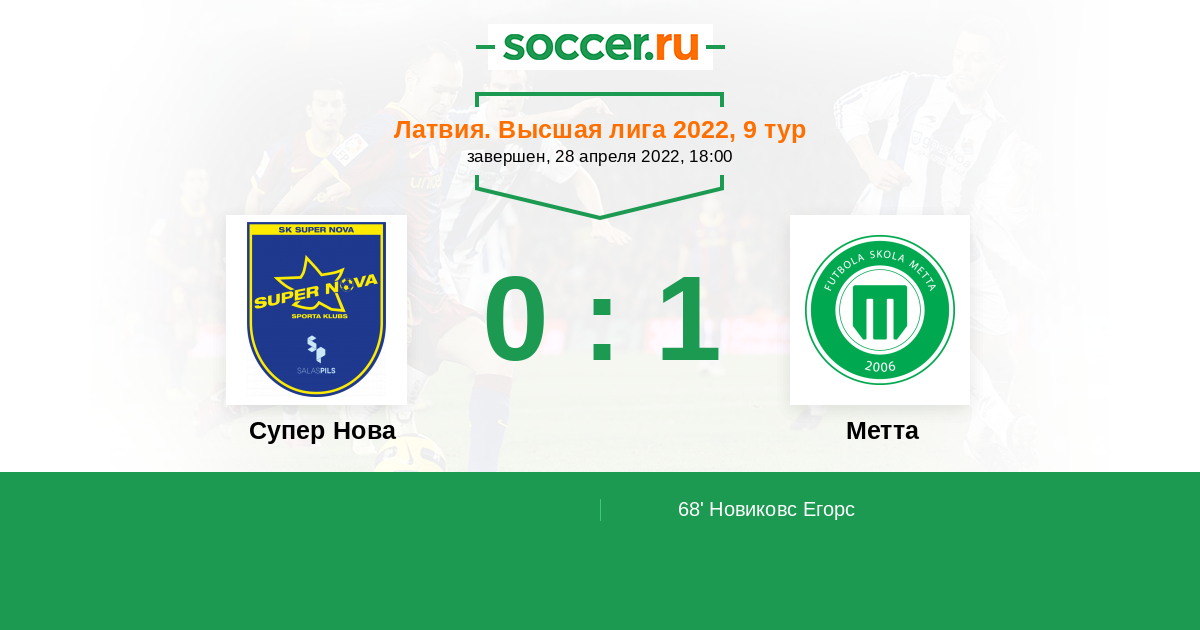 68' (0:1) Новиковс Егорс (13)