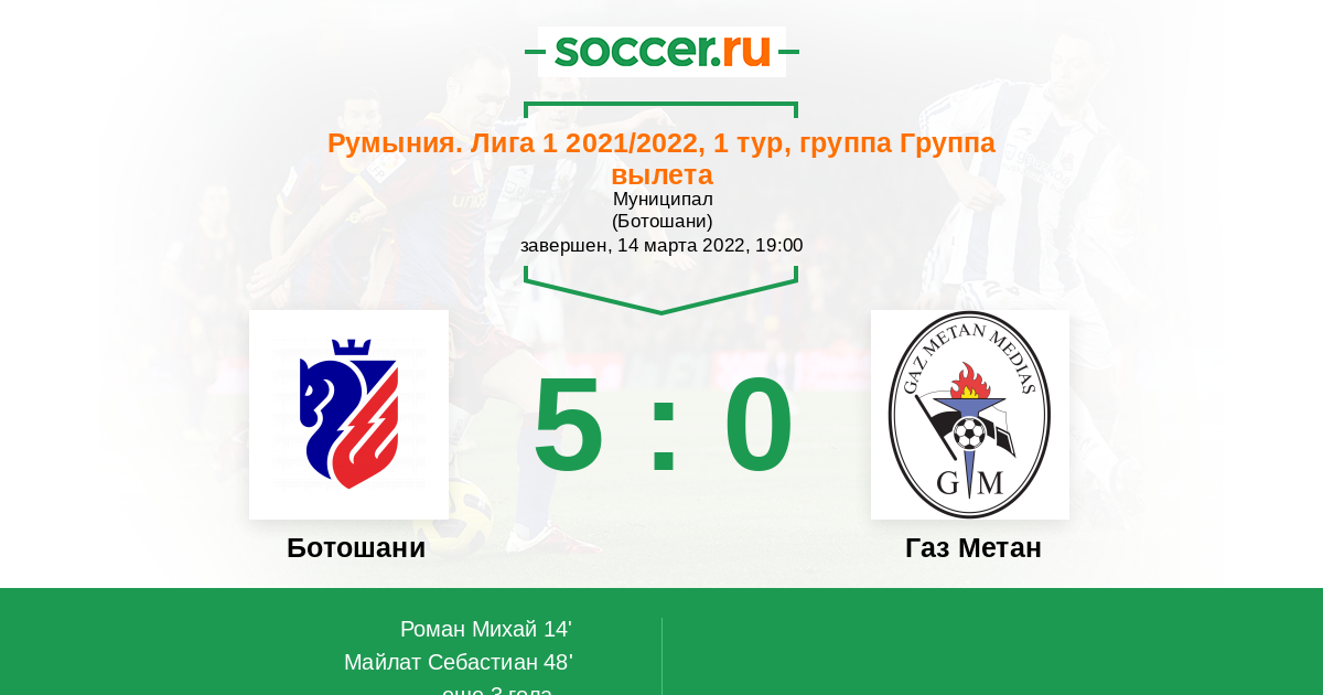 14' (1:0) Роман Михай (20) (Барбоза Матеуш (9))