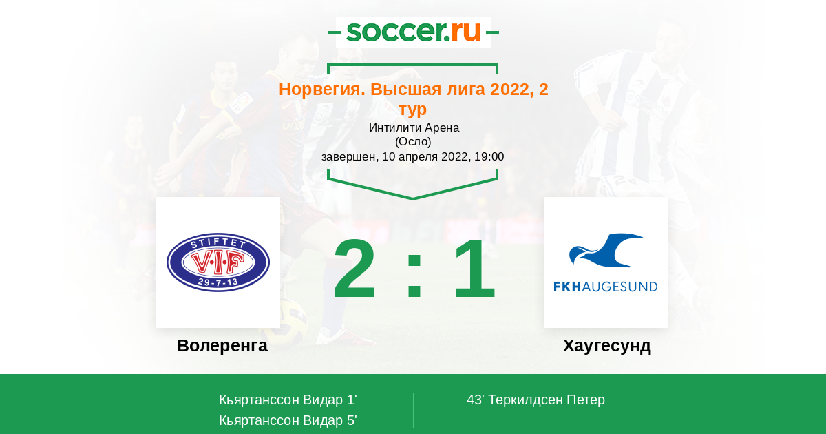 5' (2:0) Кьяртанссон Видар (9) (Странд Петтер (24))