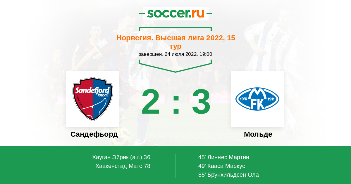 78' (2:2) Хаакенстад Матс (2) (Офкир Мохамед (7))