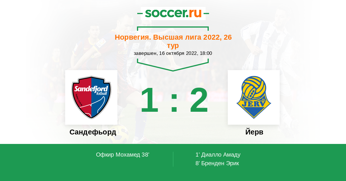 8' (0:2) Бренден Эрик (15) (Диалло Амаду (17))