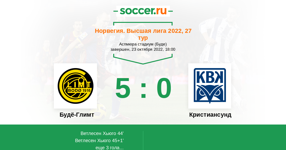 58' (4:0) Сольбаккен Ола (9) (Мое Бреде (18))