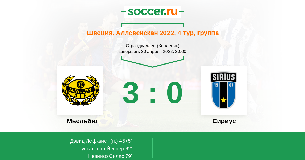 62' (2:0) Густавссон Йеспер (22)