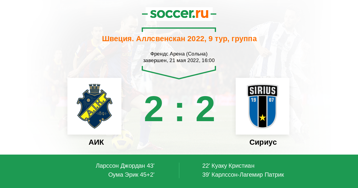 Матчи Швеция. Аллсвенскан 2022