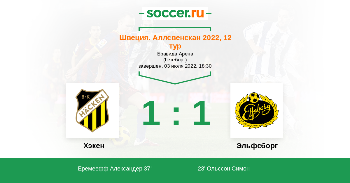23' (0:1) Ольссон Симон (10) (Альм Расмус (21))