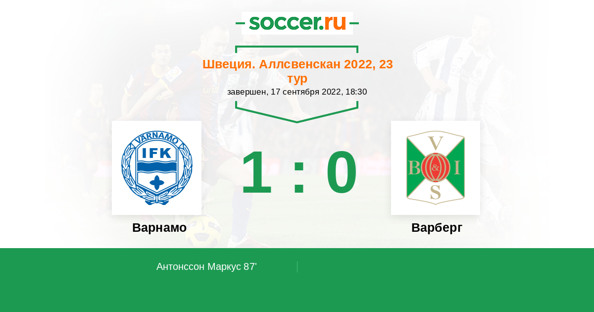 87' (1:0) Антонссон Маркус (14) (Магаши Абдуссалам (21))