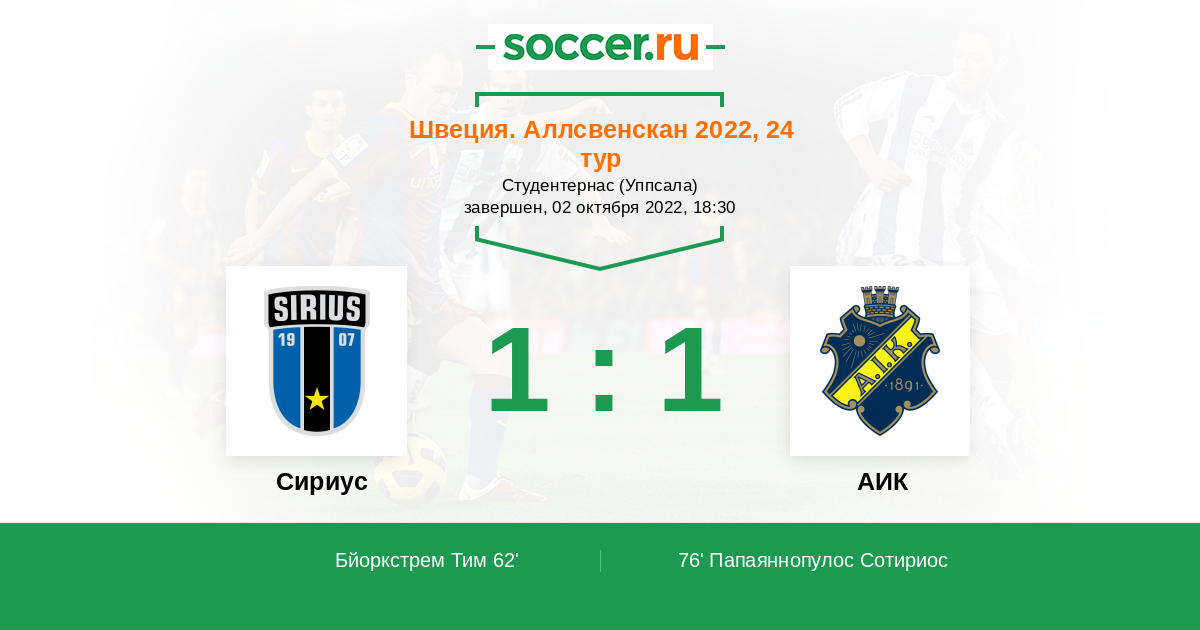 76' (1:1) Папаяннопулос Сотириос (4) (Ларссон Себастьян (7))