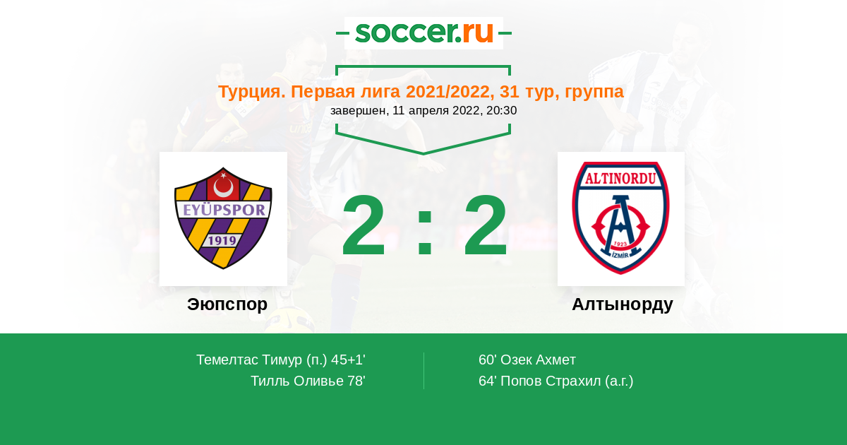 60' (1:1) Озек Ахмет (9) (Хюсаметтин Йенер (52))