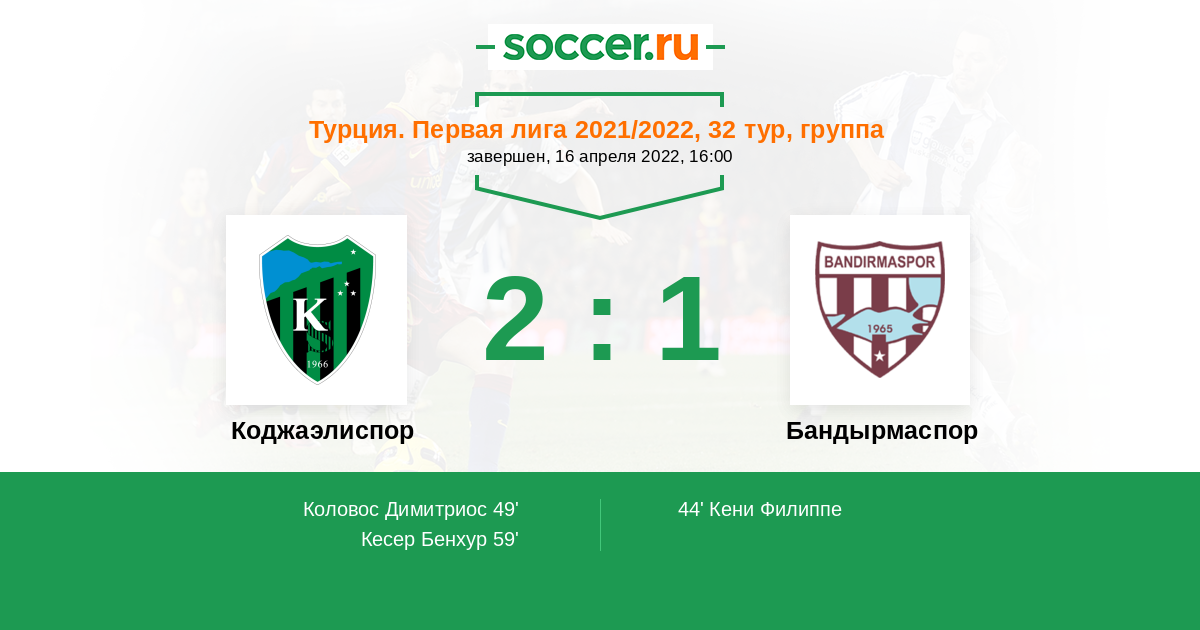 49' (1:1) Коловос Димитриос (22) (Гуйе Бабакар (24))