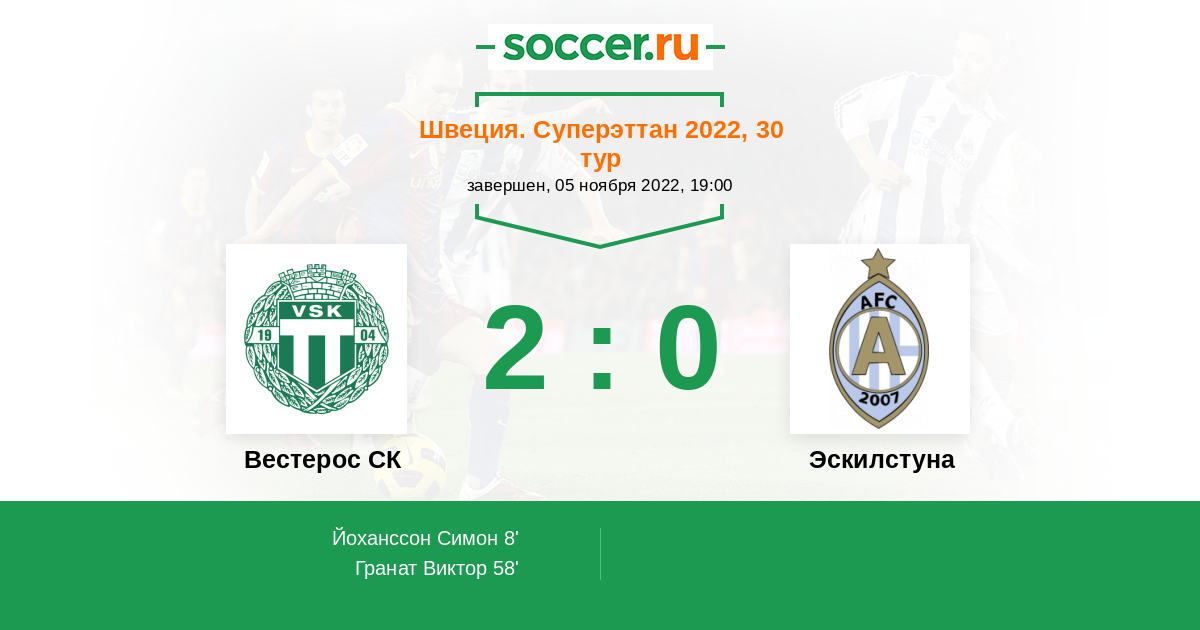 8' (1:0) Йоханссон Симон (6)