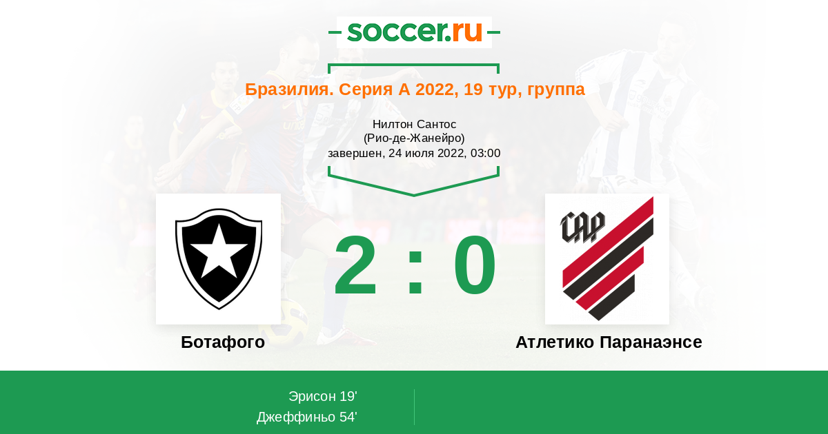 19' (1:0) Эрисон (89)